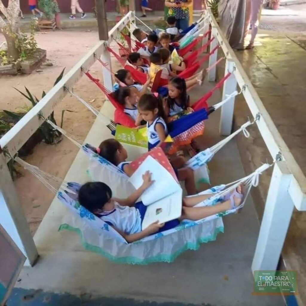 Un grupo de niños y niñas sumergidos en un proyecto de lectura